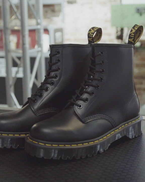 A little extra attitude. Our Bex sole sits between our classic air-cushioned outsole and a full-volume Quad platform ¡ª bringing an elevated edge you can wear every day. Here the rugged sole underpins our Original boot silhouette, built from tough Smooth leather and marked with our signature DNA: yellow welt stitching and an AirWair heel loop.