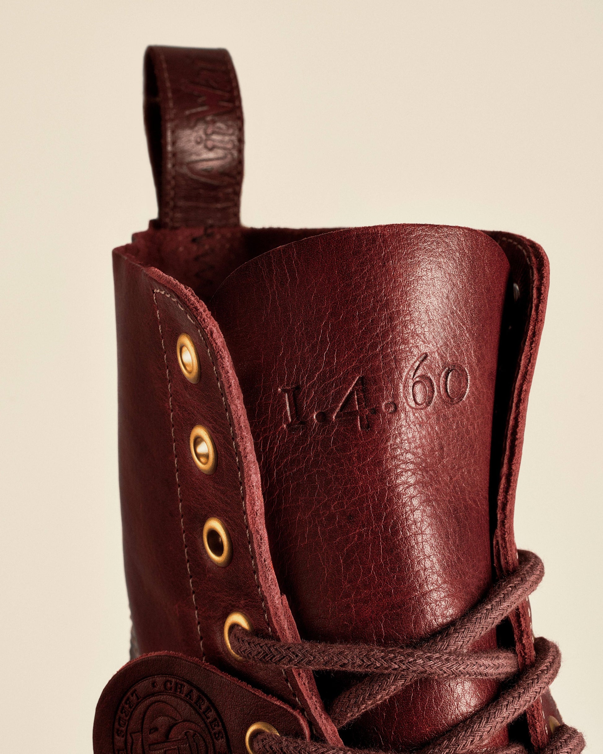 The 1460 Love Letter boot is made from C. F. Stead¡¯s luxurious, full-grain Classic Calf leather in rich burgundy with archive-inspired contrast stitching. This stitching highlights the curves of our design language and exaggerates the boot¡¯s contours. The leather¡¯s blend of natural waxes and oils produces a subtle pull-up that will develop uniquely with every step you take. Our signed heel loop is recreated in matching leather. The boot¡¯s first production date, which it was named for, is stamped on the tongue: 1.4.60.