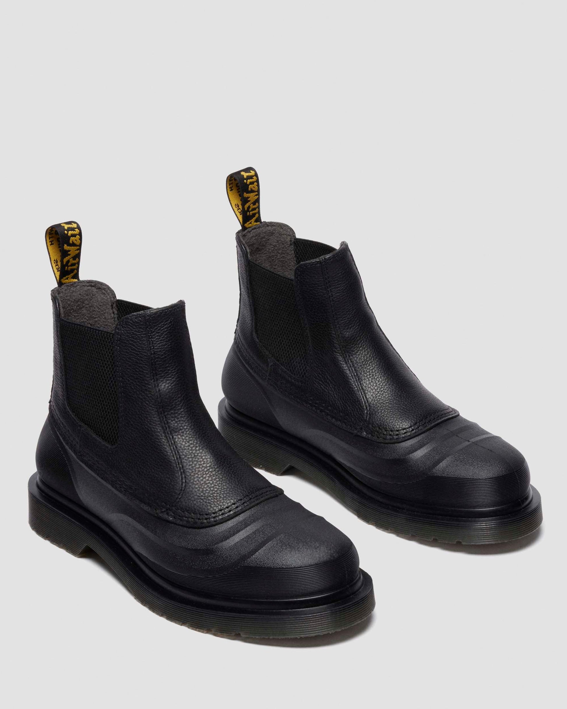 A wet weather intervention. The 2976 Sub Chelsea boot is ready to get involved ¨C come rain or shine. In durable Newlands leather, we integrated an easy-on gusset, a black rubberised waterproof ¡°sub¡± extended welt and a toe guard for high-calibre resistance. The boot also features a black and yellow heel loop and a classic black DMS sole for comfort on-the-go.