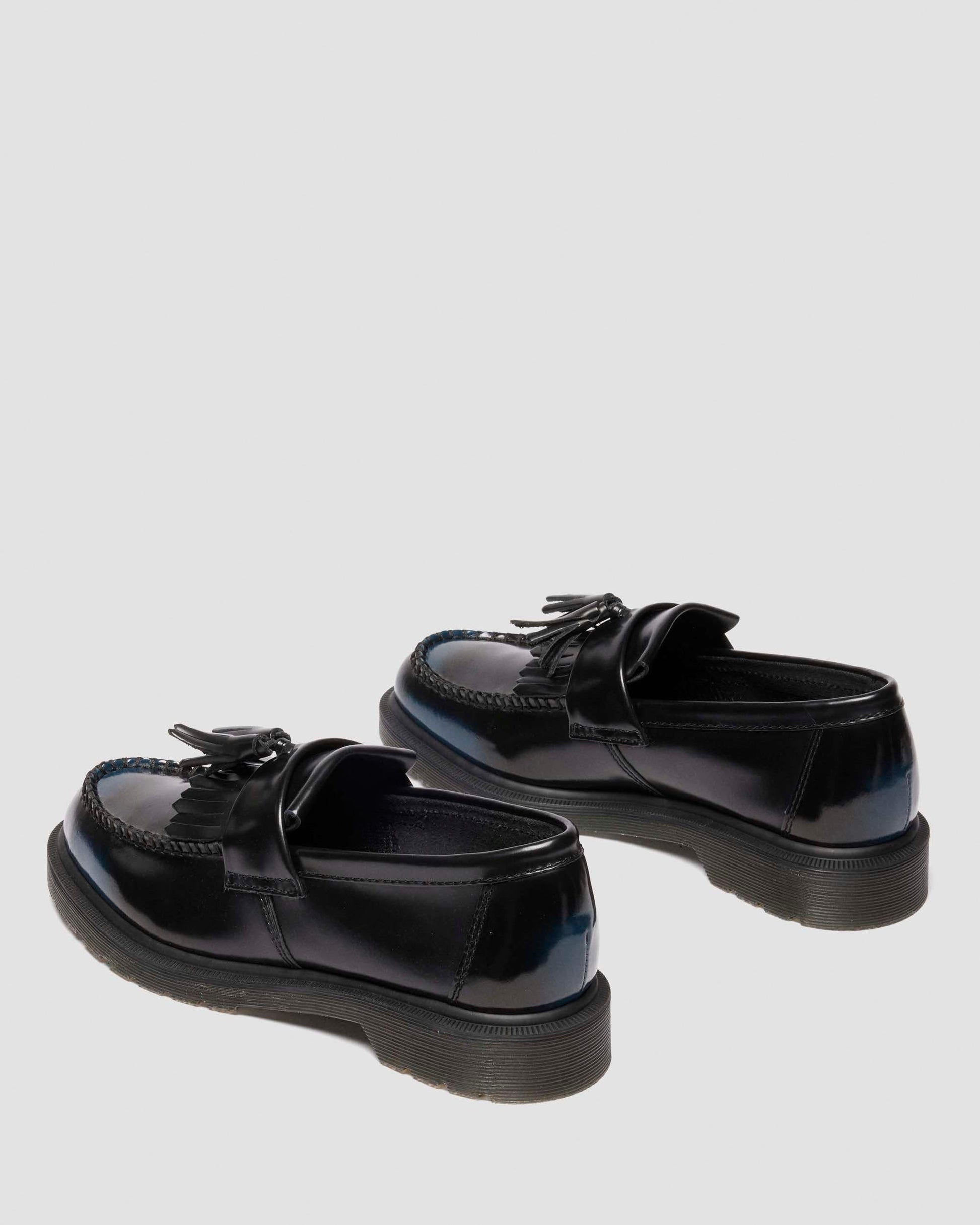 A blank canvas for your story. The Adrian tassel loafer is revived in Arcadia leather which reveals more colour with every wear. Its rub-off finish means the black top coat etches away over time to expose a navy underlayer ¨C making each pair unique. A meeting ground of the experimental and traditional, the loafer stays true to classic Adrian detailing, featuring a tassel and apron, a plain welt and a signature DMS sole in trans.