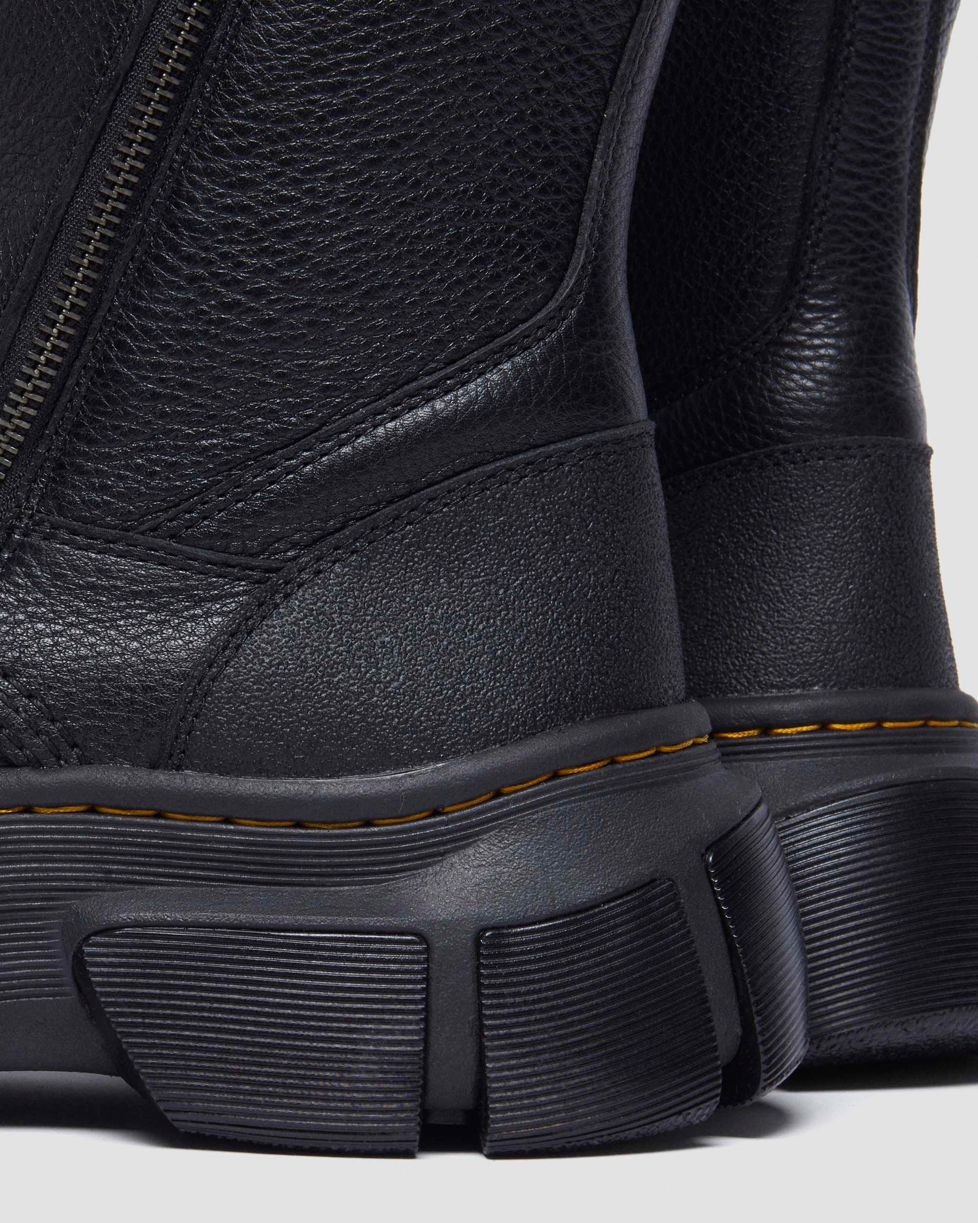 The upper is made from soft Lunar and Rubber Grain leather with extra padding, double zips, and pull tabs for easy on/off wear. Signed with yellow stitching and our black and yellow heel loop.