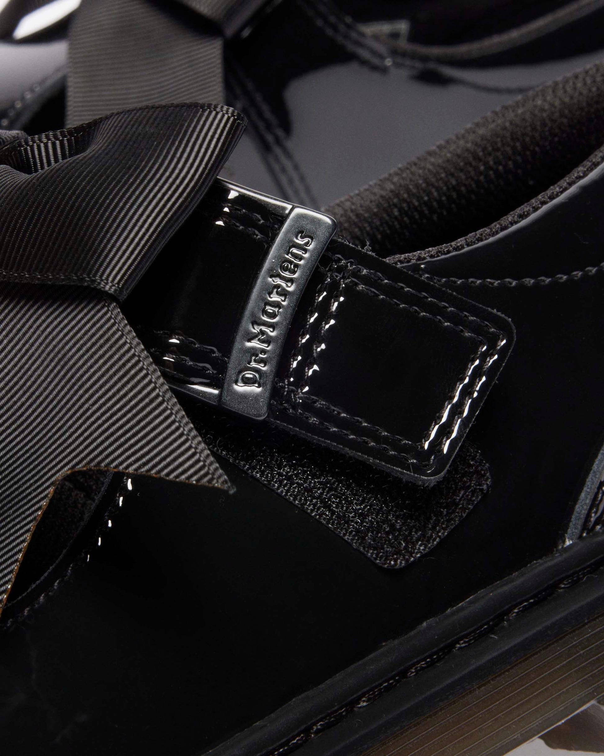 Shined up and bow-tied. The Polley II Bow shoe wraps up durable construction and playful attitude. Black Patent Lamper leather gives the shoe a polished look. Across the upper, you¡¯ll find a riptape fastening strap, oversized grosgrain bow and a heart-shaped rivet. A wingtip and shaped heel counter sculpt the back of the shoe, and a cemented smoke DMS Kids sole with grooving guarantees comfort with every wear.