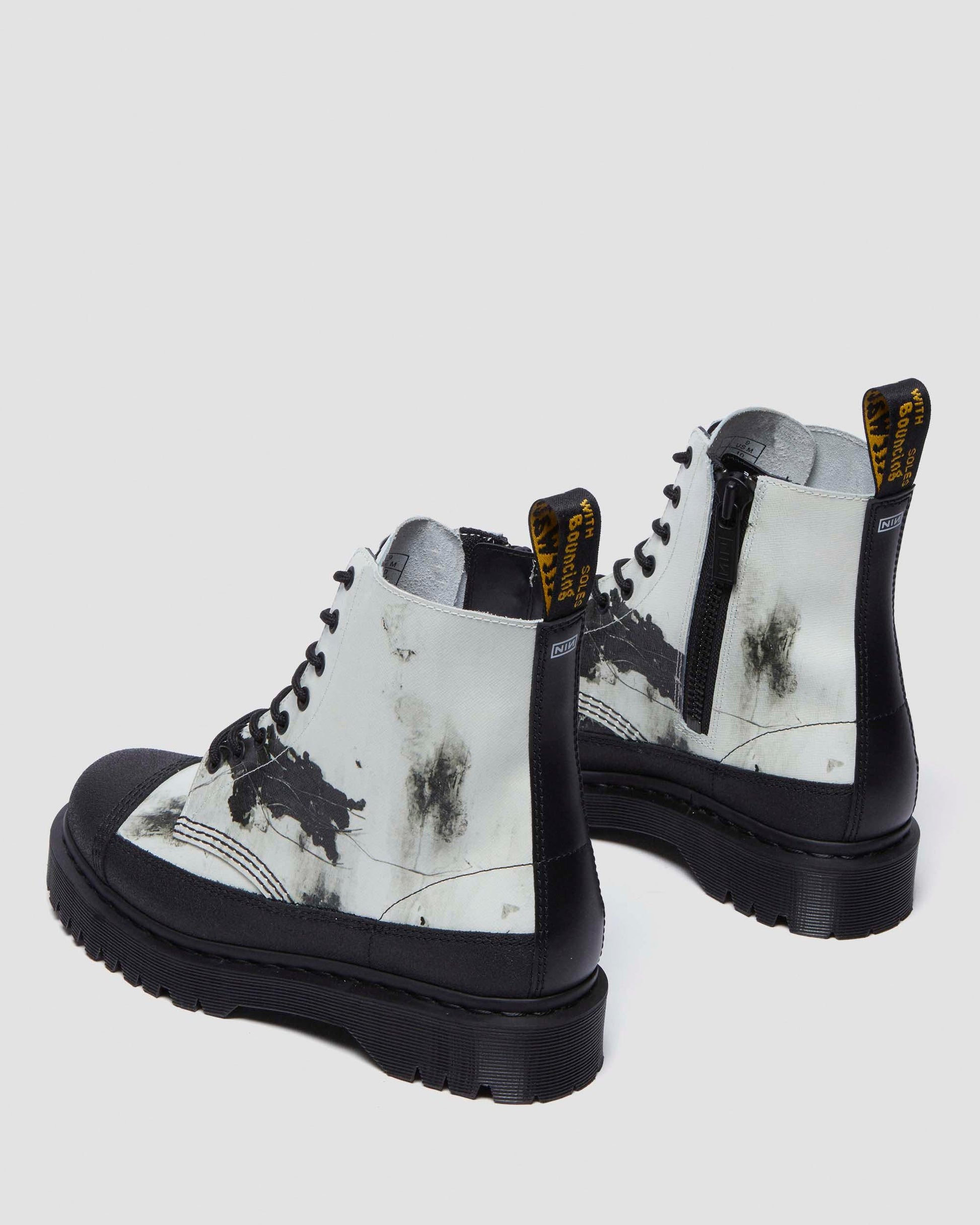 Celebrating the 30th anniversary of Nine Inch Nail¡¯s seminal album, The Downward Spiral. The 8-eye 1460 boot is reworked with the album artwork in stark black and white. Each boot is equipped with a branded ankle zip and removal ¡®jungle zip¡¯ insert for multiple wearing options. Constructed from hardwearing Backhand and Smooth leathers with an industry-inspired rubber-grained trim and toe cap. Set on a black commando tread sole with a black-on-black welt stitch. Signed with an AirWair heel loop.