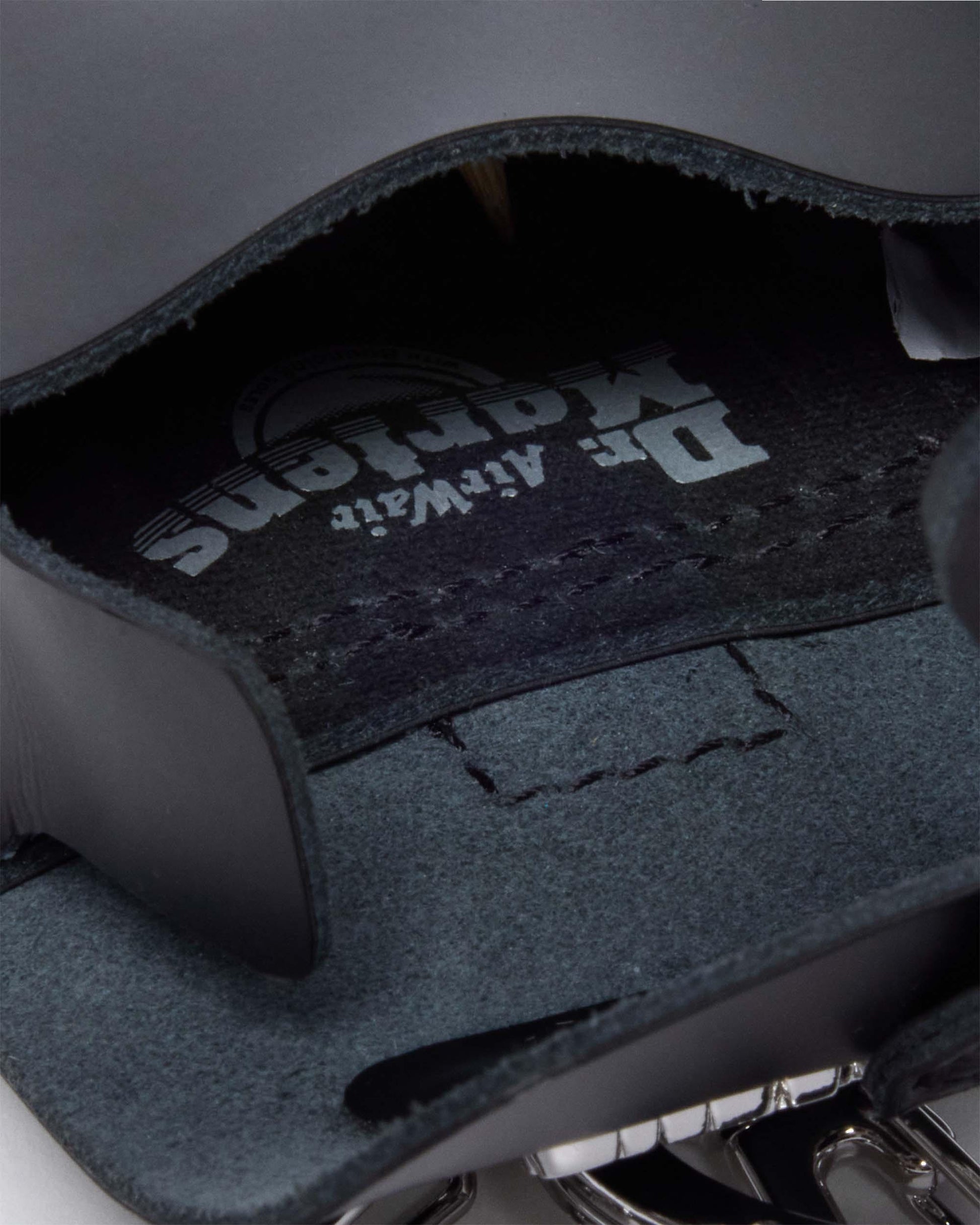 Compact but tough. The Pouch Keyring is crafted with durable Kiev leather that can withstand wear after wear, holding earphones and other smaller items. Our signature yellow welt stitching borders the pouch alongside silver hardware: an embossed Dr. Martens logo, a silver buckle fastening, a magnetic popper closure, and an attachment ring and clasp. The pouch also has a detachable AirWair woven webbing wrist strap.
