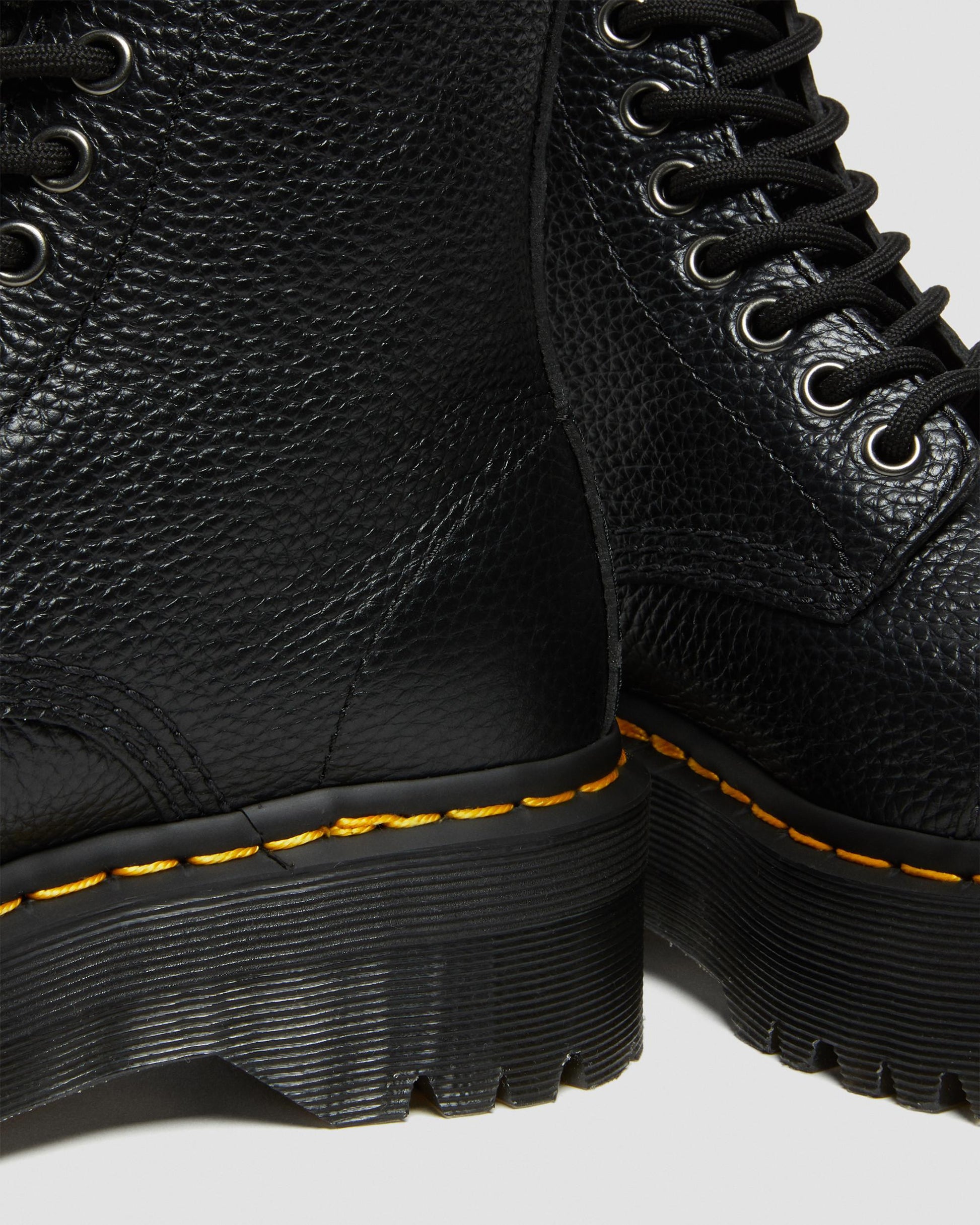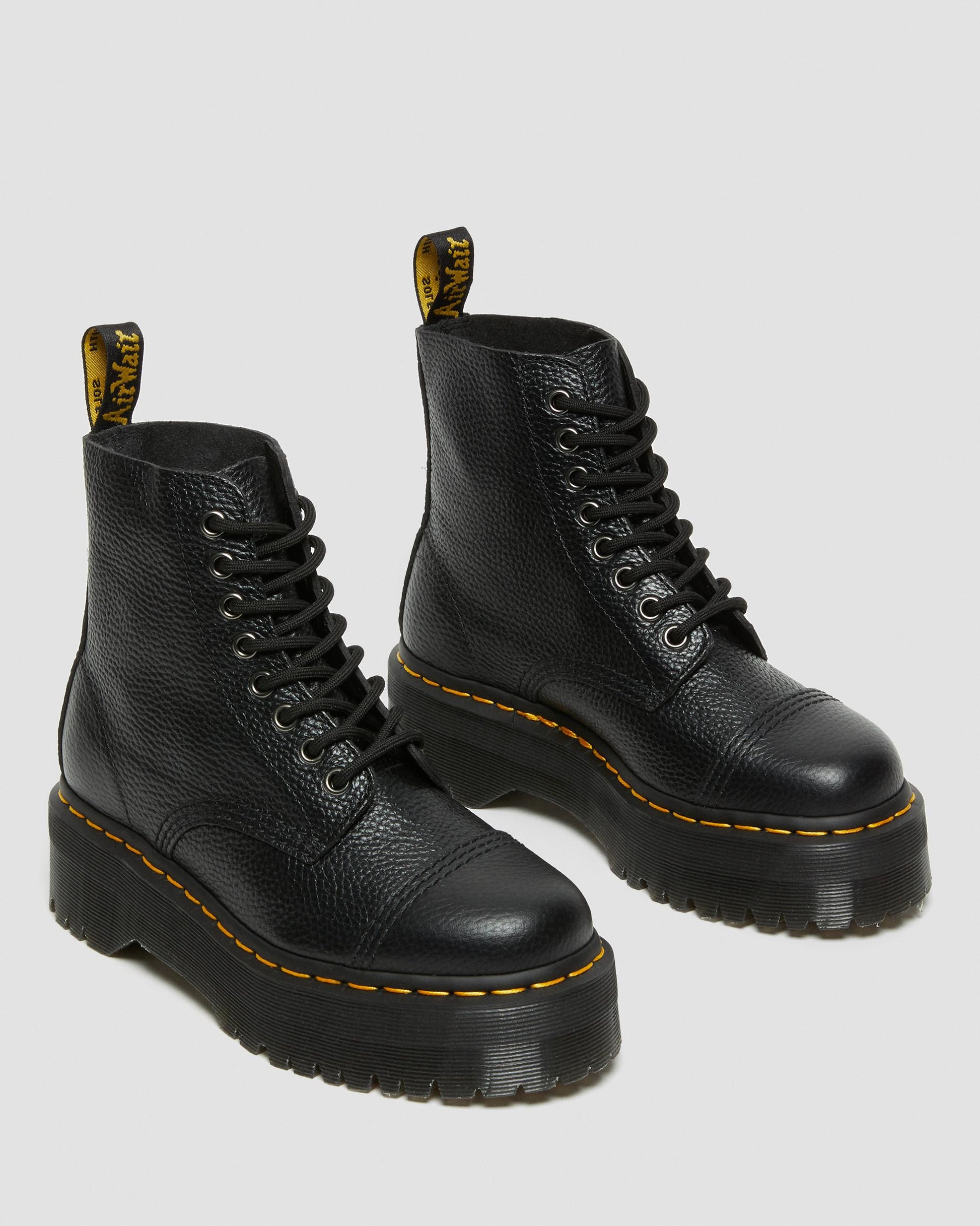 One of our headliners ¡ª our towering Sinclair is kitted out with a removable jungle piece zip, yellow welt stitching and tonnes of Docs attitude. Standing on a towering Quad platform sole, these boots are not for the faint-hearted.