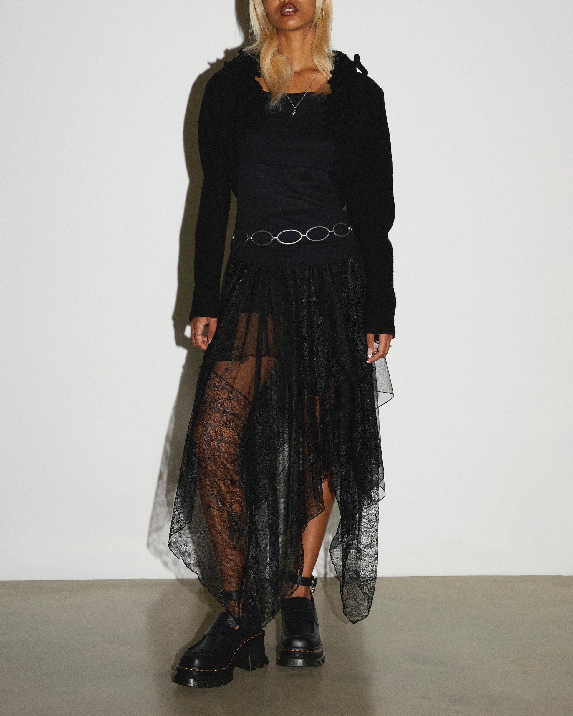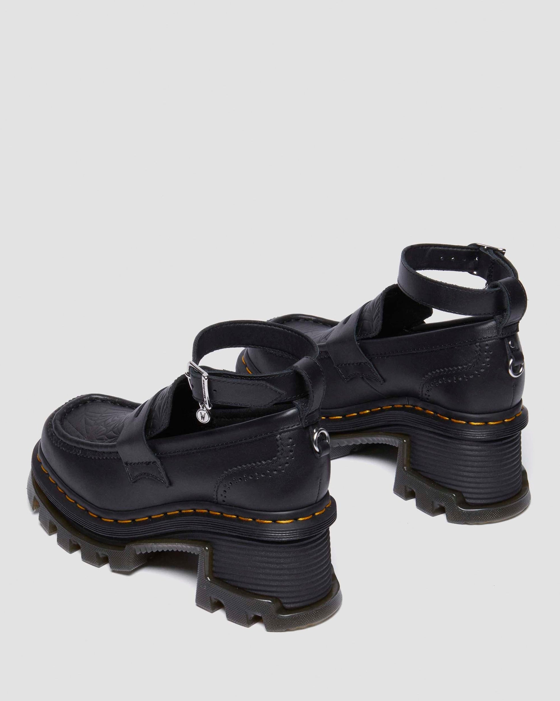 Outcasts are in. This limited-edition loafer silhouette from our DM¡¯s x Wednesday collection is made with supple Wanama leather with stained-glass-inspired embroidery across the vamp. The top of the shoe has an adjustable ankle strap with a dual-branded buckle, and the back of the heel is tagged with a hardware ring. The shoe is fitted with a SoftWair insole for comfortable wear. The heeled sole has exaggerated grooving and is secured with classic yellow welt stitching.