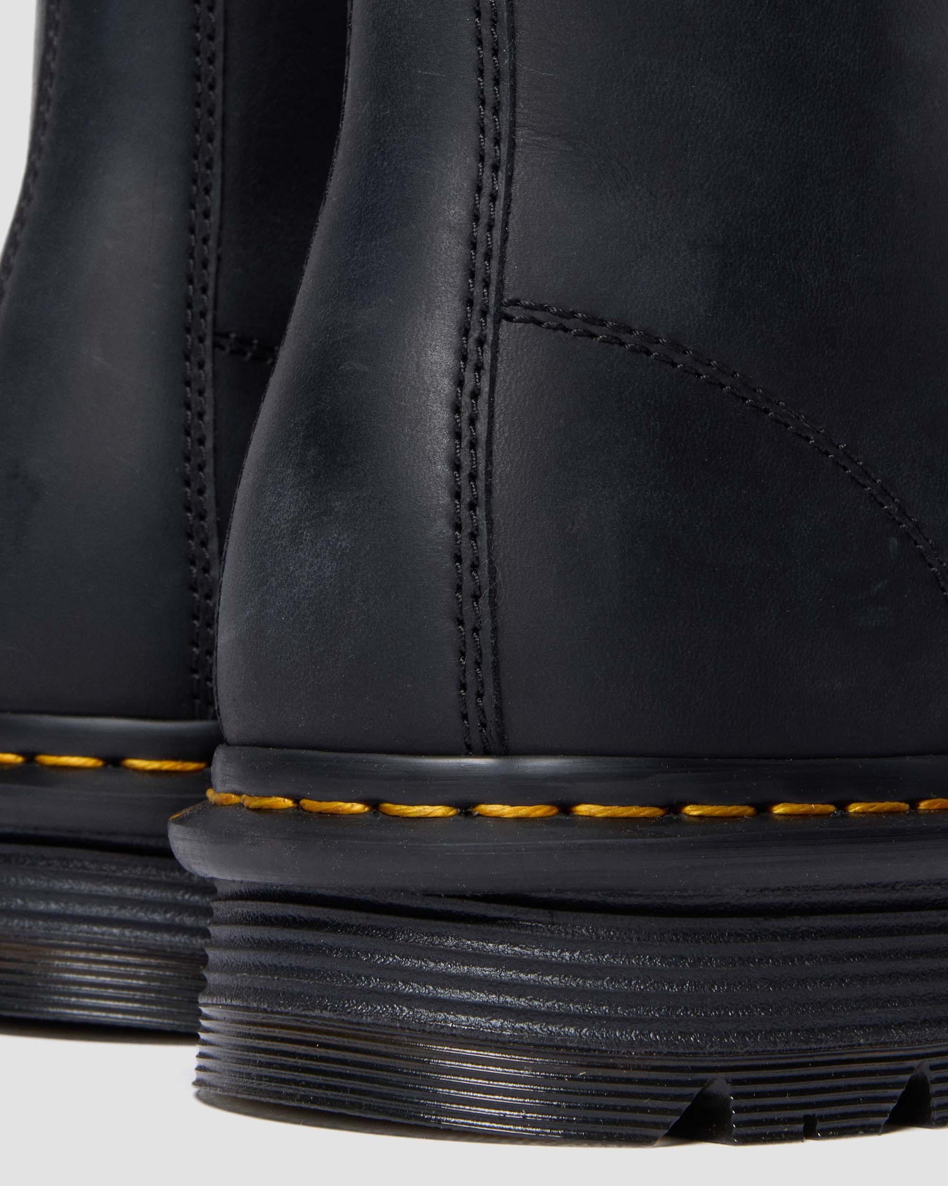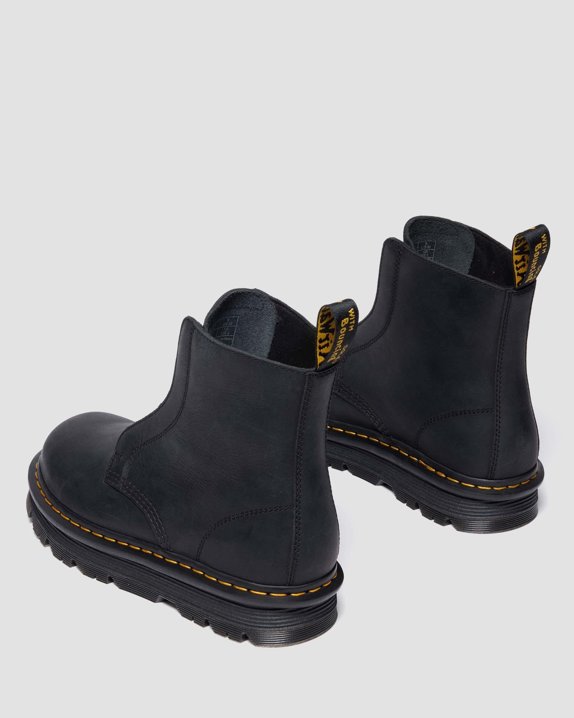 Give tough days a gentle landing with our new Zebzag Laceless boot. Made with rugged Wyoming leather, the relaxed silhouette takes inspiration from our classic 1460 boot and transforms it into a slip-on boot ¡ª for minimum effort and maximum comfort. The ergonomic Zebzag sole combines lightweight EVA and durable PVC to give your feet an easy ride without limiting your destination. And our SoftWair footbed adds extra cushioning. The sole boasts distinctive DM's signatures, with a bold tread pattern, exaggerated grooving, and our unmistakable yellow welt stitching.